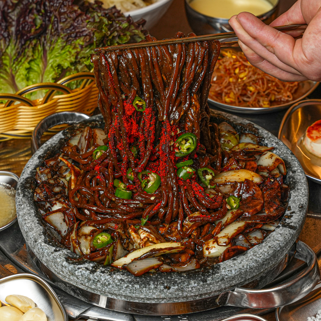 대표 메뉴인 ‘직화 돼지 양념구이’는 수제 양념에 3일간 숙성한 돼지갈비로 불향 가득한 깊은 맛을 자랑하며, ‘깍둑 항정살’은 쫄깃한 식감으로 인기를 끌고 있습니다. 또한 주문 즉시 볶아내는 ‘돌판 간짜장’, 계란과 치즈가 더해진 ‘불닭볶음면’, 고기와 찰떡궁합인 ‘물냉면’과 ‘비빔냉면’, 그리고 구수한 ‘진한 된장찌개’까지 다양하게 준비되어 있어 만족도를 높이고 있습니다.