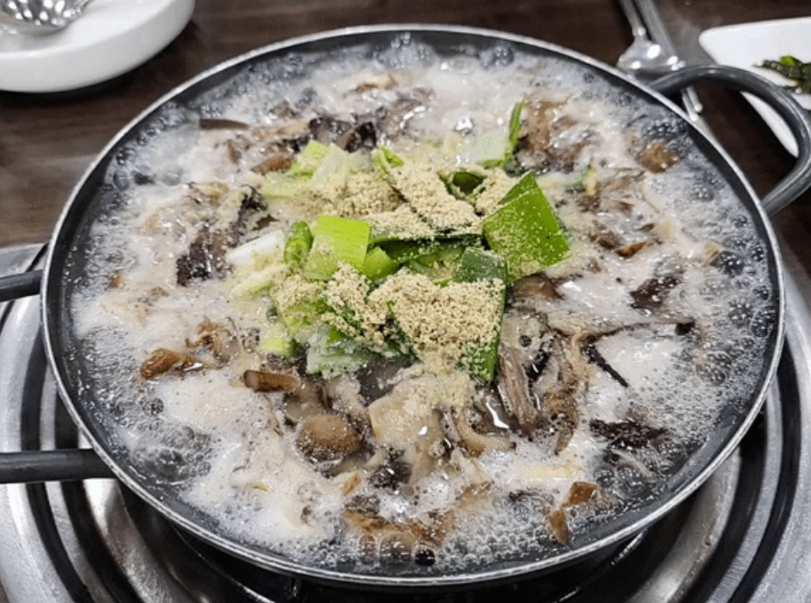 버섯돌이식당은 자연산 버섯을 활용한 보양식 전문점으로, 진천 지역에서 버섯 닭백숙으로 유명한 식당입니다. 표고, 느타리, 팽이 등 다양한 버섯과 함께 들깨가루를 넣어 진하게 우려낸 국물은 고소하고 깊은 맛을 자랑합니다. 닭고기 외에도 달걀, 염통, 똥집 등 내장류가 풍성하게 들어가며, 식사 후에는 죽으로 마무리할 수 있습니다. 2시간 전 예약 필수이며, 택배는 불가합니다.