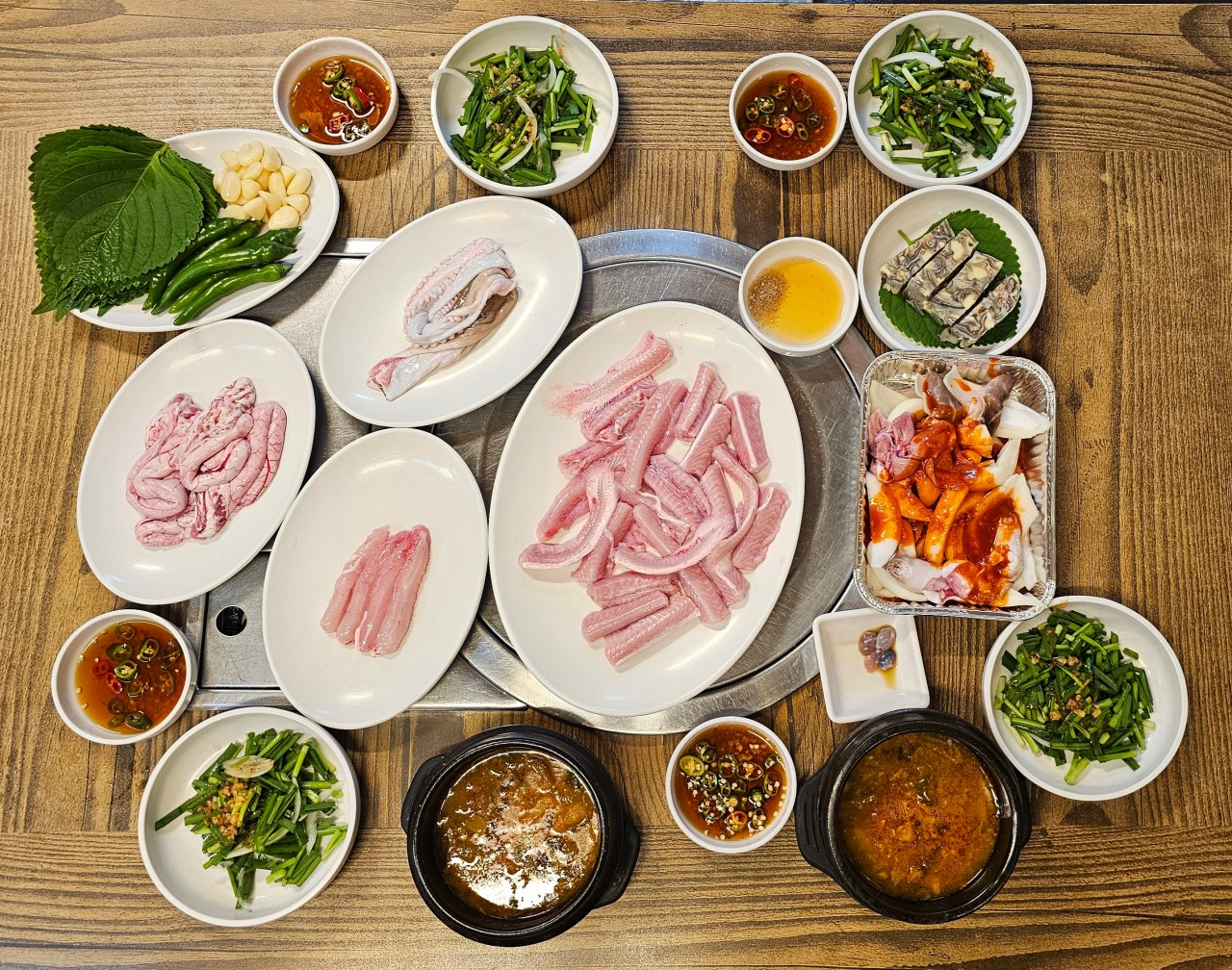 더 넉넉한 인원에게는 국산숯불산꼼장어스페샬(3~4인분)이 제격입니다. 120,000원에 국산 숯불로 구운 산꼼장어구이를 비롯해 만두, 전복, 소고기, 꼼탕, 꼼장어묵까지 푸짐하게 제공되며, 깊은 풍미와 영양을 동시에 만족시켜줍니다. 1~2인분 구성도 60,000원에 준비되어 있어 소규모 방문객도 부담 없이 즐길 수 있습니다.