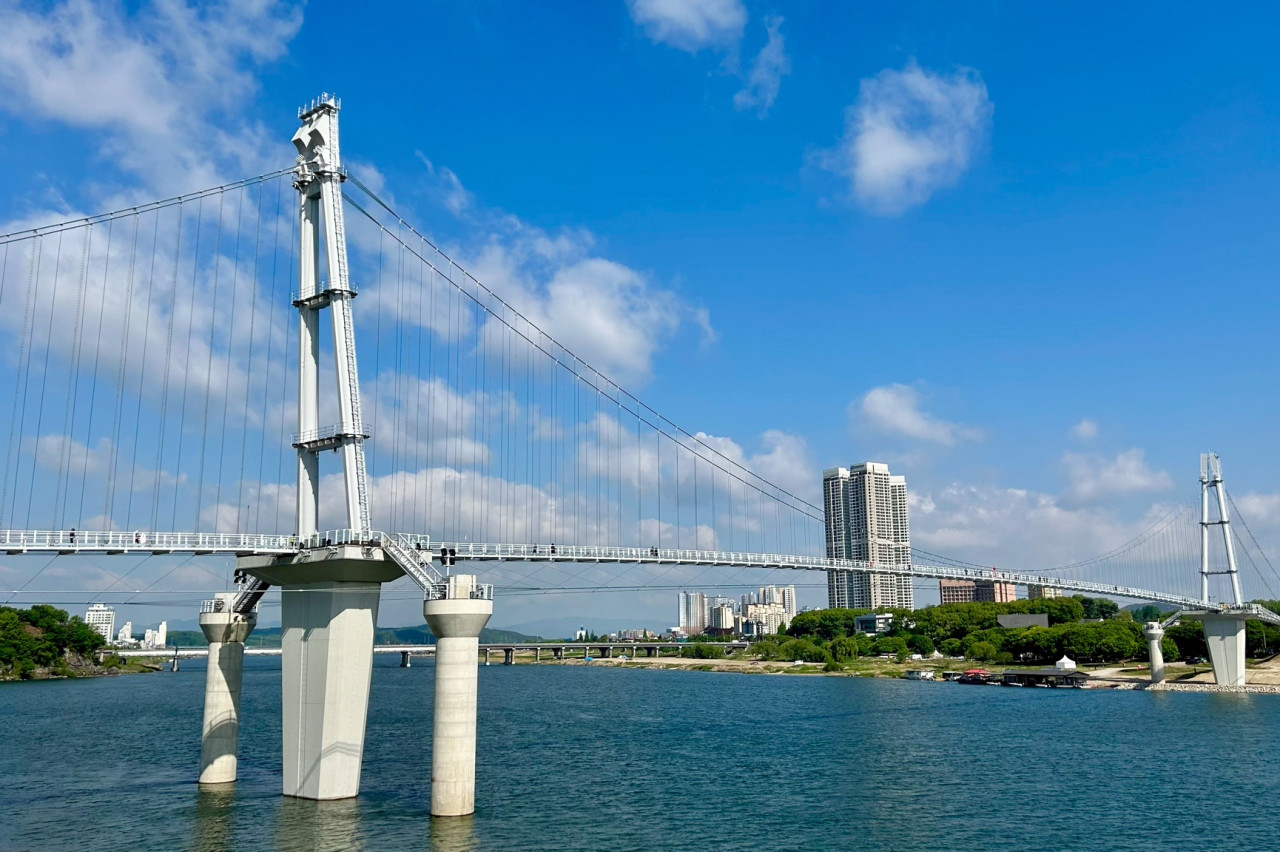 남한강출렁다리는 2025년 개통된 국내 최장 길이의 현수교로, 총 길이 515m에 달하며 신륵사와 금은모래캠핑장을 연결합니다. 남한강을 가로지르며 걷는 이 다리는 낮에는 강변 풍경을, 밤에는 미디어파사드로 화려한 야경을 선사합니다. 여주의 새로운 랜드마크로 많은 관광객들의 발길을 끌고 있습니다.