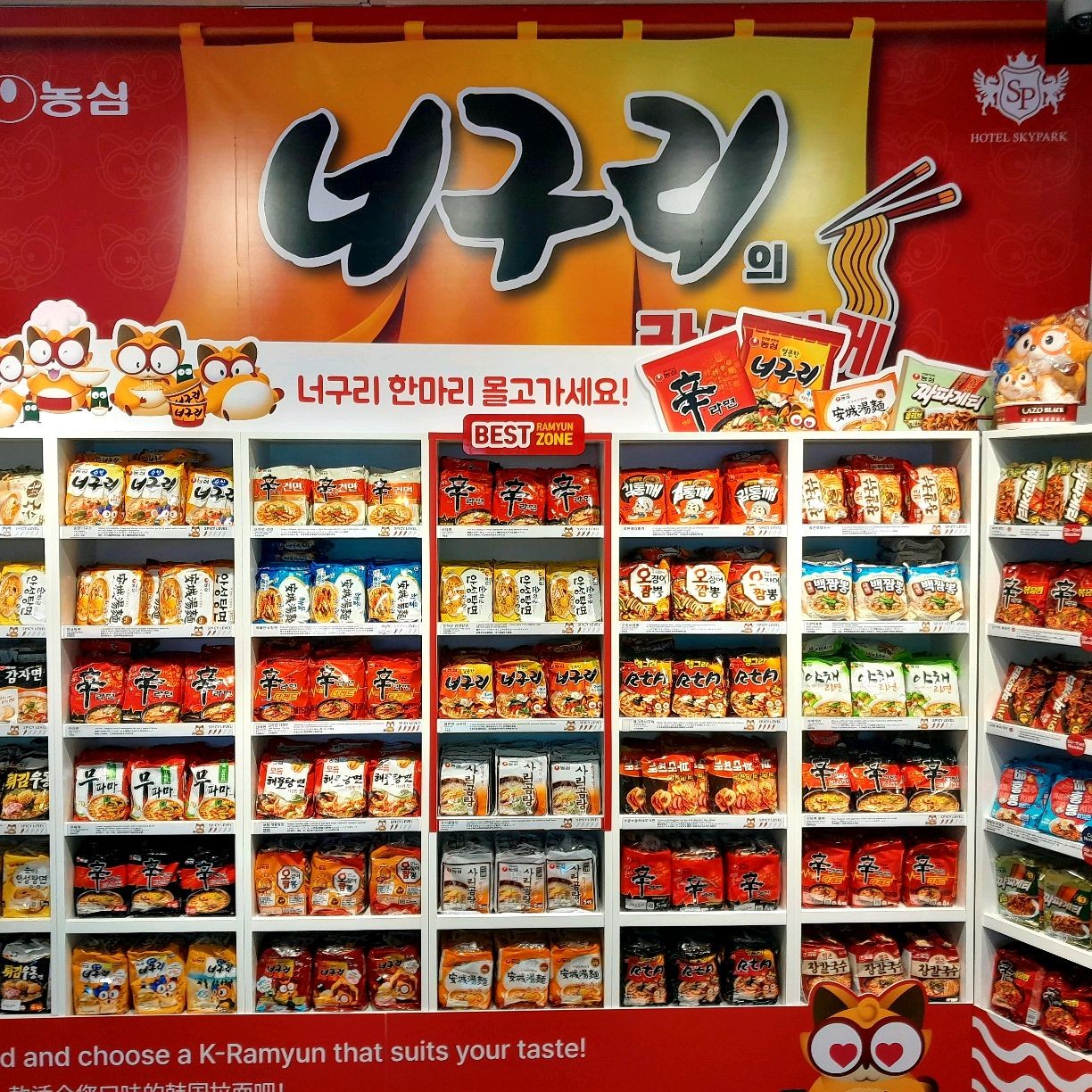 너구리 이름답게 다양한 농심 라면이 전시되어 있고, 매장 내에서 귀여운 너구리 굿즈를 구매할 수 있어,