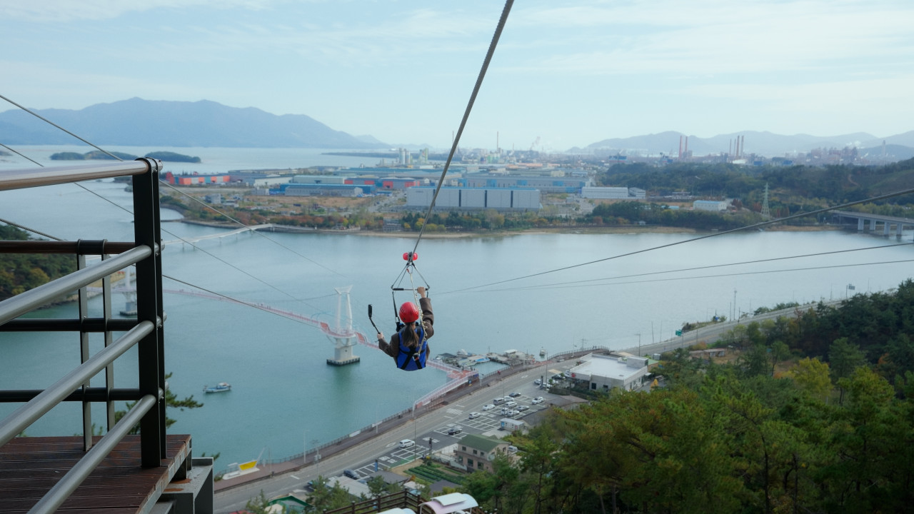 바람을 가르며 섬진강 부근을 한눈에 감상할 수 있는 짚라인은 스릴 넘치는 색다른 체험을 제공합니다.