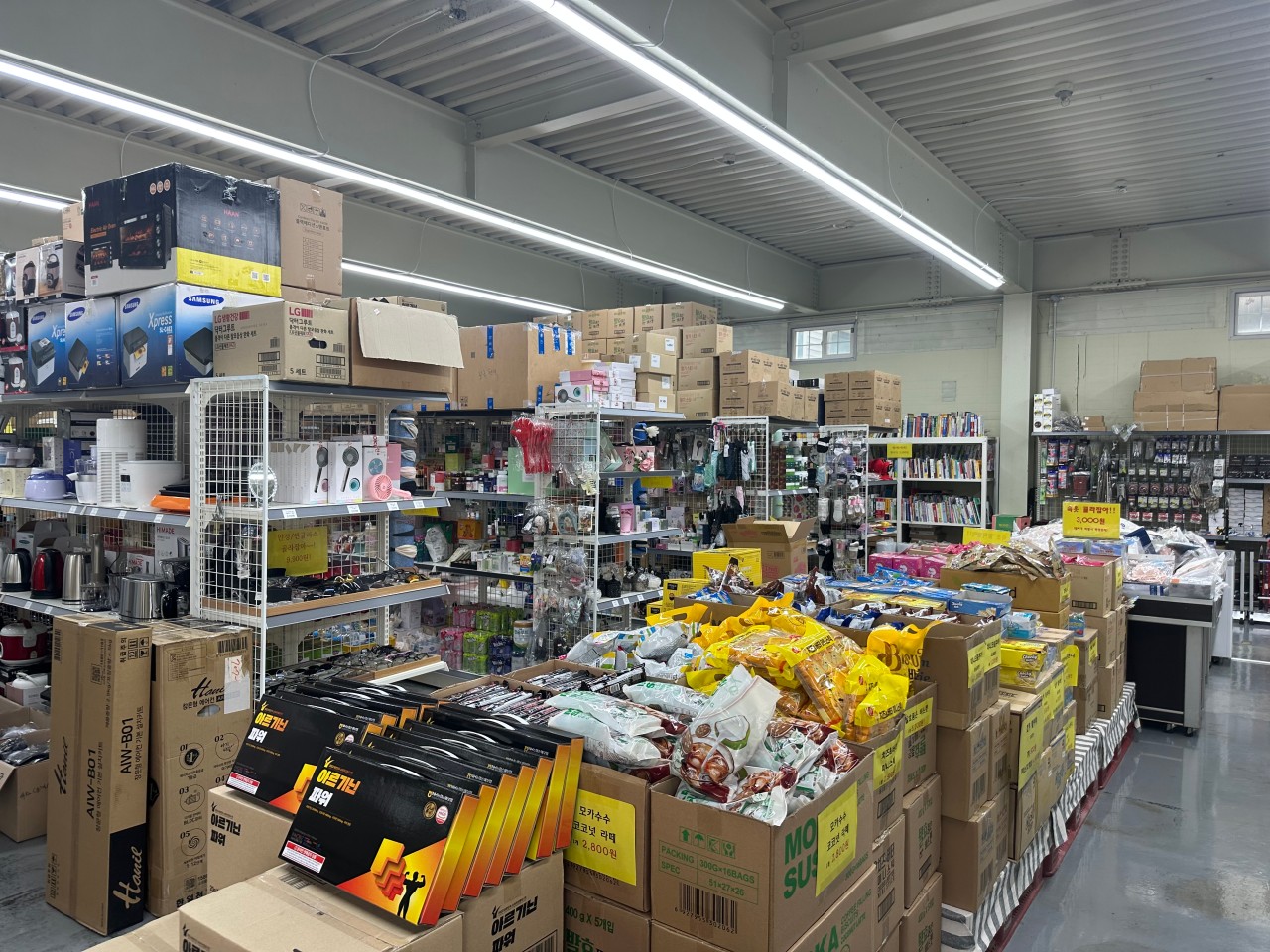 매장은 2층 규모로, 1층에는 과일·야채·밀키트·유제품 등 신선식품과 주방용품, 생활잡화가 가득하고, 2층에는 반려동물 용품, 소형가전, 계절가구, 캠핑용품, 이불·커튼 등 다양한 생활 아이템이 진열되어 있어 마치 보물찾기를 하듯 쇼핑의 재미를 느낄 수 있습니다. 특히 과일 코너는 ‘과일천국’이라 불릴 만큼 품질 좋은 과일을 반값에 구매할 수 있어, 가족 단위 방문객들에게 큰 인기를 끌고 있습니다.