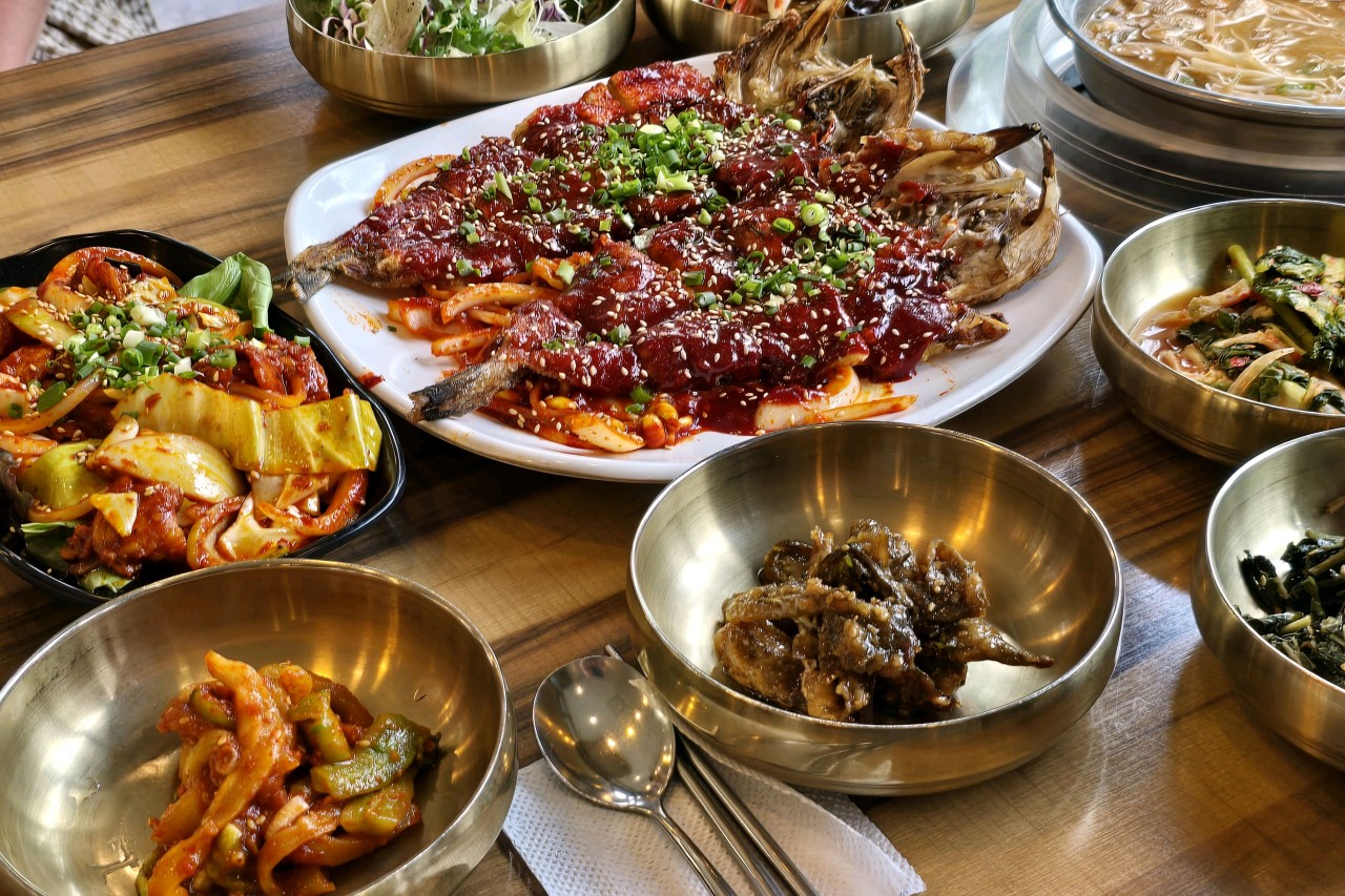 가게 내부에는 명인의 상패들이 진열되어 있어 그동안의 노력을 엿볼 수 있으며, 반찬과 된장, 젓갈 등은 따로 구매해가는 손님도 많습니다. 식사에 제공되는 물조차 일반 정수물이 아닌 십전대보차로, 속을 편안하게 해주는 특별한 경험을 선사합니다. 대표 메뉴인 코다리구이는 겉은 바삭하고 속은 촉촉하며, 매콤달콤한 양념이 입맛을 돋워 많은 손님들에게 호평을 받고 있습니다. 감자전과 제육볶음, 청국장찌개 등도 인기 메뉴로, 정갈한 밥상에 정성이 가득 담겨 있습니다.