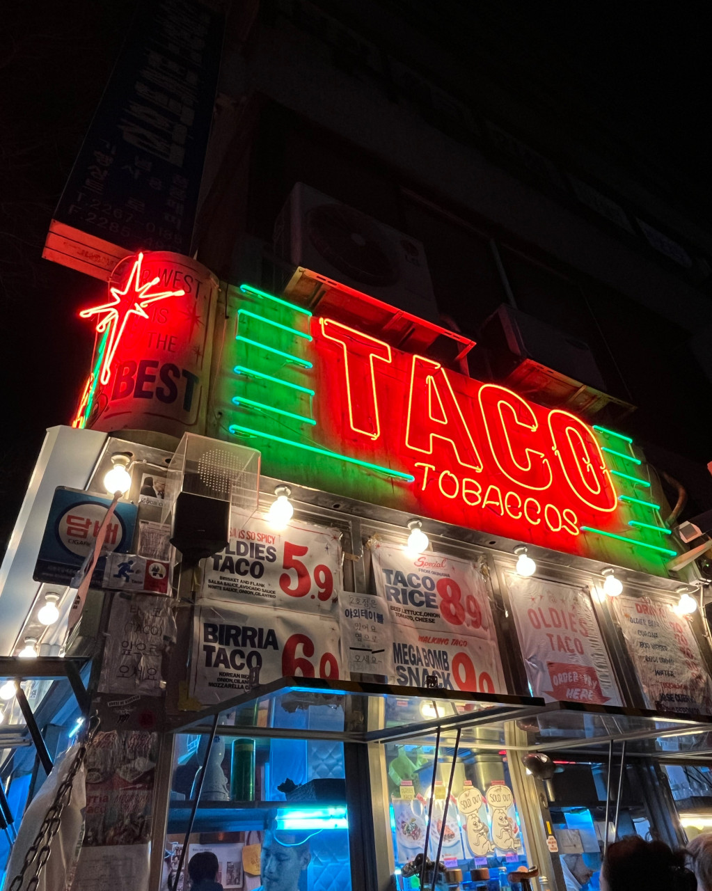 올디스타코는 남미의 느낌이 물씬 나는 독특한 외관을 자랑하는 멕시칸 레스토랑입니다. 을지로3가역 8번 출구 앞에 위치한 이곳은 작은 편의점을 개조하여 만든 공간으로, 손에 들고 편하게 즐길 수 있는 스트릿 타코를 지향합니다. 빈티지한 무드의 네온사인과 큼지막한 영문 메뉴로 꾸며진 내부는 미국 현지의 멕시칸 레스토랑을 재현한 듯한 분위기를 제공합니다.