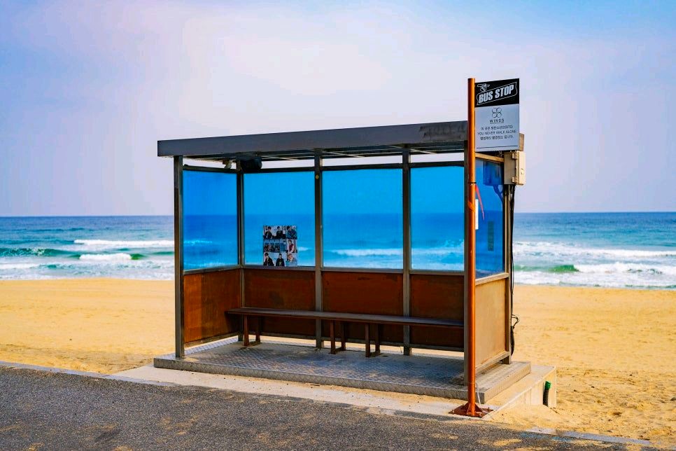 이곳은 K-POP 그룹 방탄소년단이 미국 빌보드 음반차트에서 1위를 기록한 앨범의 재킷 사진에 등장한 바닷가의 버스 정류장으로, 촬영 당시 임시로 설치되었다가 철거된 후 관광객들을 위해 포토존으로 다시 만들어졌습니다. 방탄소년단의 팬들 사이에서 큰 인기를 끌고 있으며, 주문진 해변의 독특한 볼거리로 주목받고 있습니다.