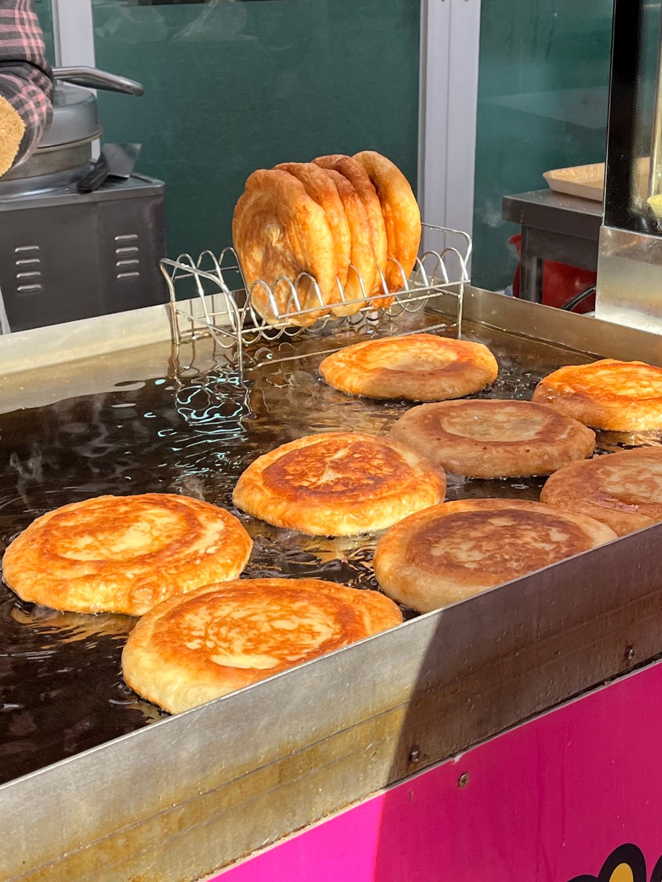 특히 단팥, 고기, 야채 등 여러 가지 옵션이 있어 선택의 폭이 넓습니다. 가격 또한 매우 합리적이며, 1개에 2,000원, 3개를 사면 5,000원으로 양도 푸짐하여 가성비가 뛰어납니다. 이름처럼 크기가 상당하여 한 개만으로도 충분히 배를 채울 수 있습니다. 대왕호떡은 부평시장에서 많은 사람들에게 사랑받는 간식으로, 특히 관광객들에게도 인기가 높습니다.