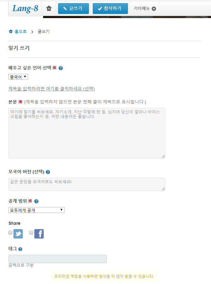 중국어 뿐만 아니라 다양한 언어들을 무료로 첨삭 받을 수 있는 곳이다.