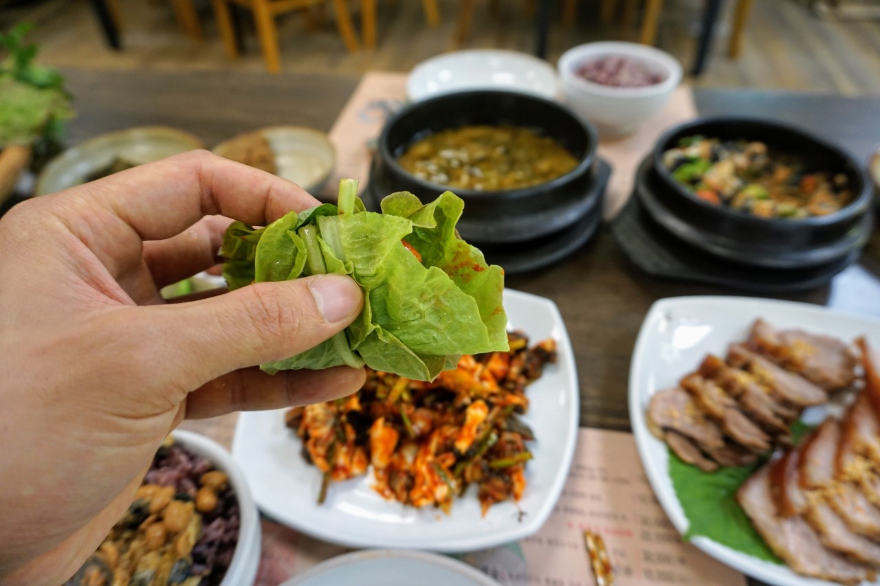 게다가 우렁이강된장과 수육을 만들 때도 곰보배추를 넣어 건강밥상에 진심인 사장님의 손맛이 일품인 곳입니다. 오동통한 우렁이가 가득한 강된장과 싱싱한 쌈 채소를 입 터질 만큼 즐기고 싶다면 이곳을 강력 추천합니다.