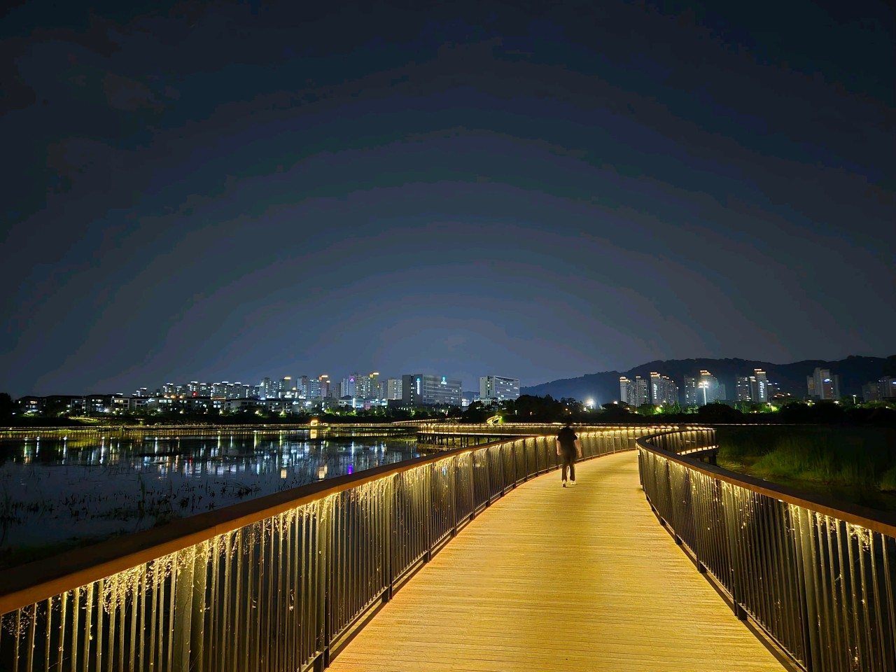 공원 내에는 약 460m 구간에 가우라베이비, 니포피아, 억새, 백합 등 개화기가 각기 다른 5종의 화초류 7,544본이 식재되어 있어 사계절 내내 다채로운 꽃의 아름다움을 감상할 수 있습니다. 특히, 밤이 되면 물에 반영된 아파트의 불빛과 고요한 호수가 어우러져 환상적인 풍경을 만들어냅니다. 기지제를 끼고 있는 전망 좋은 카페와 음식점들도 많아, 방문객들은 여유롭게 식사나 음료를 즐기며 자연을 만끽할 수 있습니다. 기지제 수변공원은 자연과 휴식을 동시에 제공하는 소중한 공간으로, 모두에게 특별한 경험을 선사합니다.