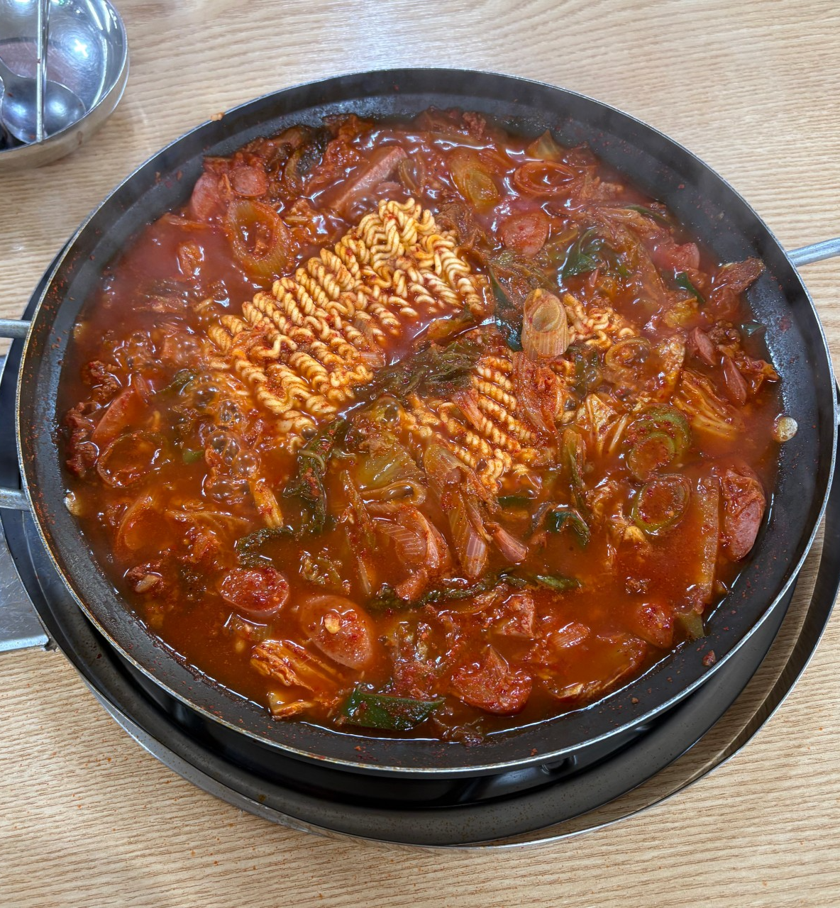 부대찌개는 개인의 취향에 맞춰 햄사리, 소시지 사리, 떡사리, 라면사리 등을 추가할 수 있어 더욱 풍성하게 즐길 수 있습니다. 또한, 매장 옆에 전용 주차장이 마련되어 있어 주차가 용이하며, 만약 주차 공간이 부족할 경우 근처의 백석천 공영주차장을 이용할 수 있습니다.