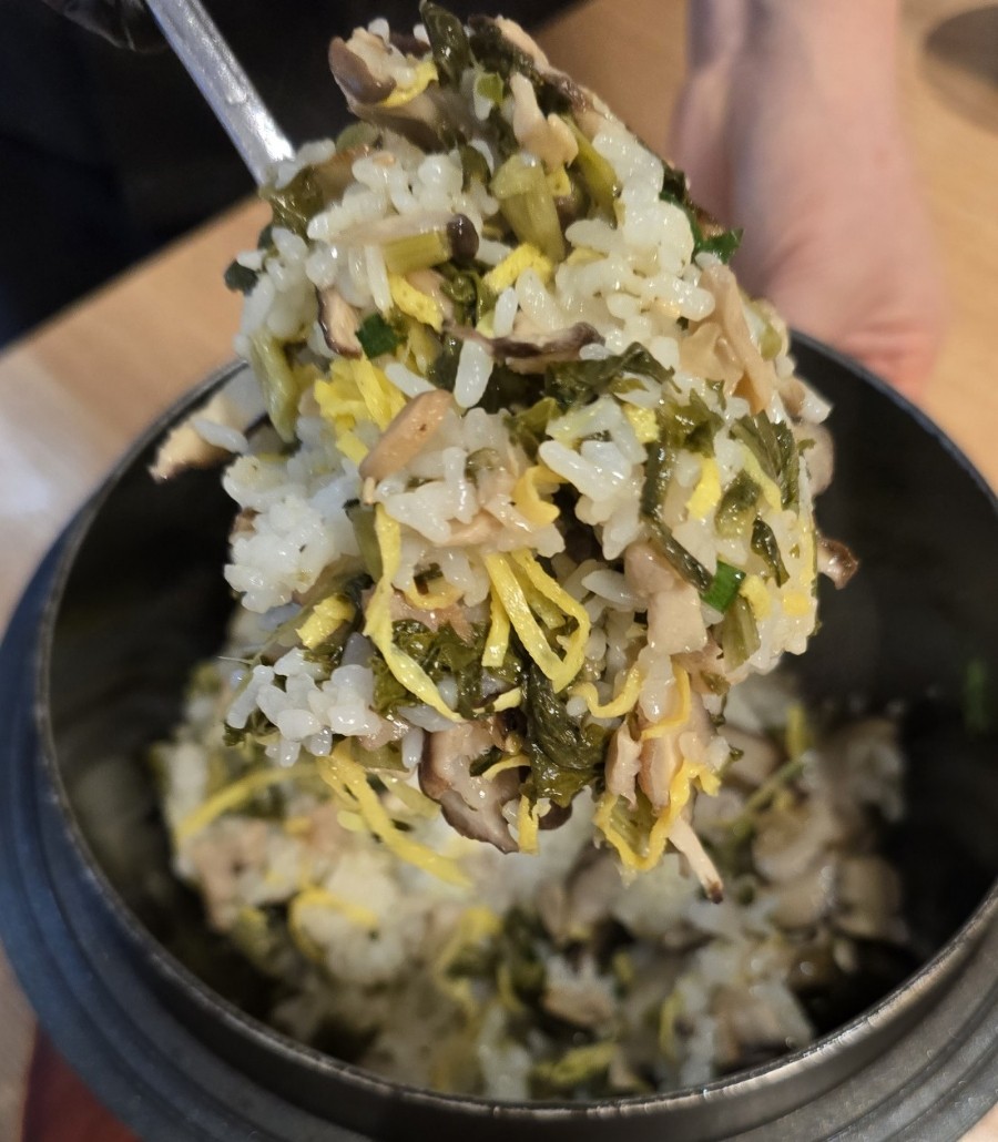 어수리해물솥밥은 임금님께 진상되었던 어수리를 주재료로 하여 신선한 해산물과 조화를 이루며 독특한 맛을 제공합니다. 건강을 생각하는 이들에게는 씨래기버섯솥밥이 최적의 선택으로, 다양한 버섯과 씨래기가 어우러져 깊은 맛과 영양을 자랑합니다. 이모님께서 양념장을 넣어 비벼주어 편리하게 즐길 수 있는 솥밥은 꼭 맛봐야 할 메뉴입니다.
