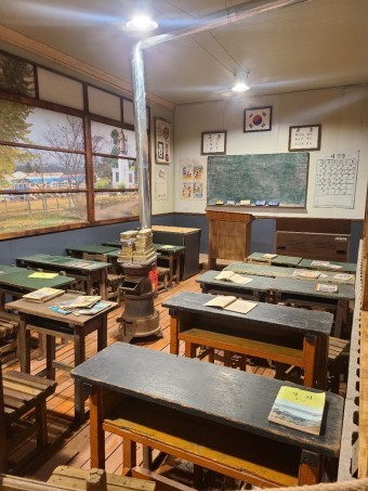 카페테리아를 지나면 올드타임의 진정한 보물창고, 근현대사박물관이 나타납니다. 층고 5m, 길이 70m의 압도적인 규모를 자랑하는 박물관은 구멍가게, 대폿집, 비디오 대여점, 만화방, 사진관 등 다양한 테마의 세트장으로 구성되어 있습니다. 삐삐, 워크맨, 석유곤로 등 추억의 물건들이 전시되어 있으며, 마을전망대에서는 전시 공간 전체를 한눈에 조망할 수 있습니다.