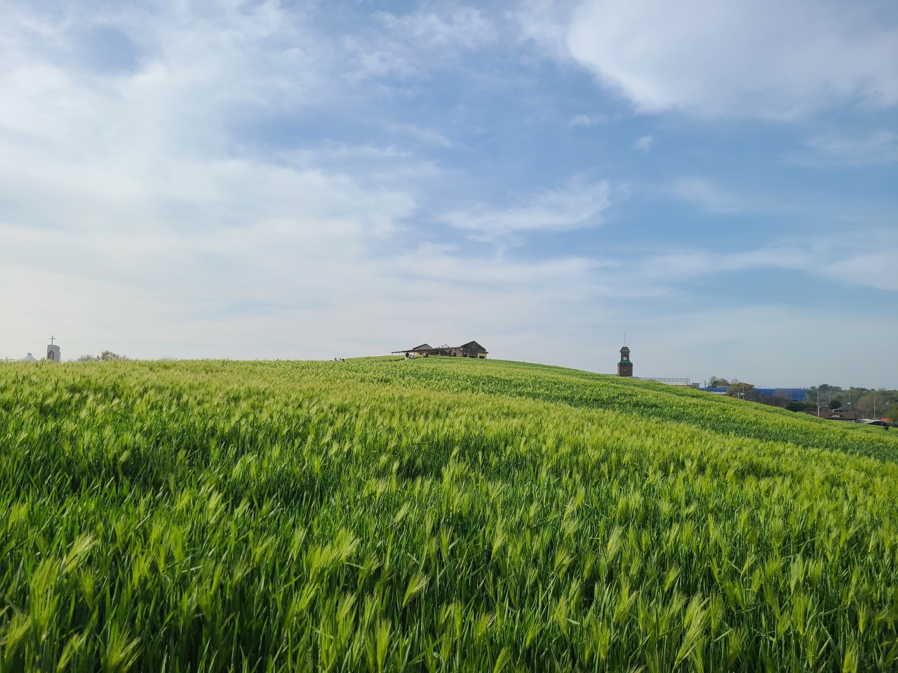 인생샷 명소로 떠오른 보령 천북폐목장 청보리밭! SNS에서 입소문이 난 이곳은 푸르른 청보리를 배경으로 아름다운 사진을 남기기에 더없이 좋은 장소입니다. 인기 드라마 그 해 우리는의 촬영지로도 사용된 이 폐목장은 개인 사유지로, 현재 입장료 8,000원을 내면 목장 건물을 개조한 카페에서 음료로 교환할 수 있습니다. 넓게 펼쳐진 청보리밭을 감상하며 여유로운 시간을 보낼 수 있습니다.