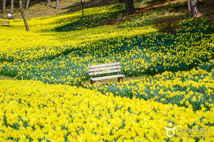 서산의 유기방가옥은 봄철 수선화의 아름다움과 전통 한옥의 매력을 동시에 느낄 수 있는 특별한 장소입니다. 이곳은 고즈넉한 한옥과 노란 수선화가 가득 심어진 언덕이 어우러져 그림 같은 풍경을 만들어냅니다. 매년 3월부터 4월 중순까지 만개한 수선화를 감상할 수 있으며, 이 시기에는 언덕과 산자락이 샛노란 구름처럼 물들어 방문객들에게 잊지 못할 경험을 선사합니다.