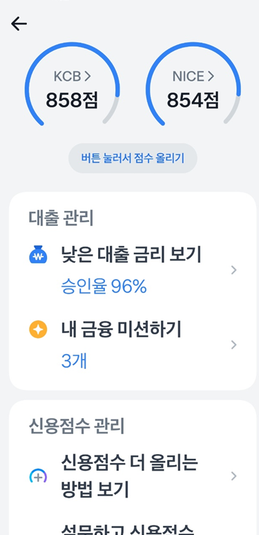 - 제공되는 정보: 신용점수, 대출정보, 채무보증정보 등