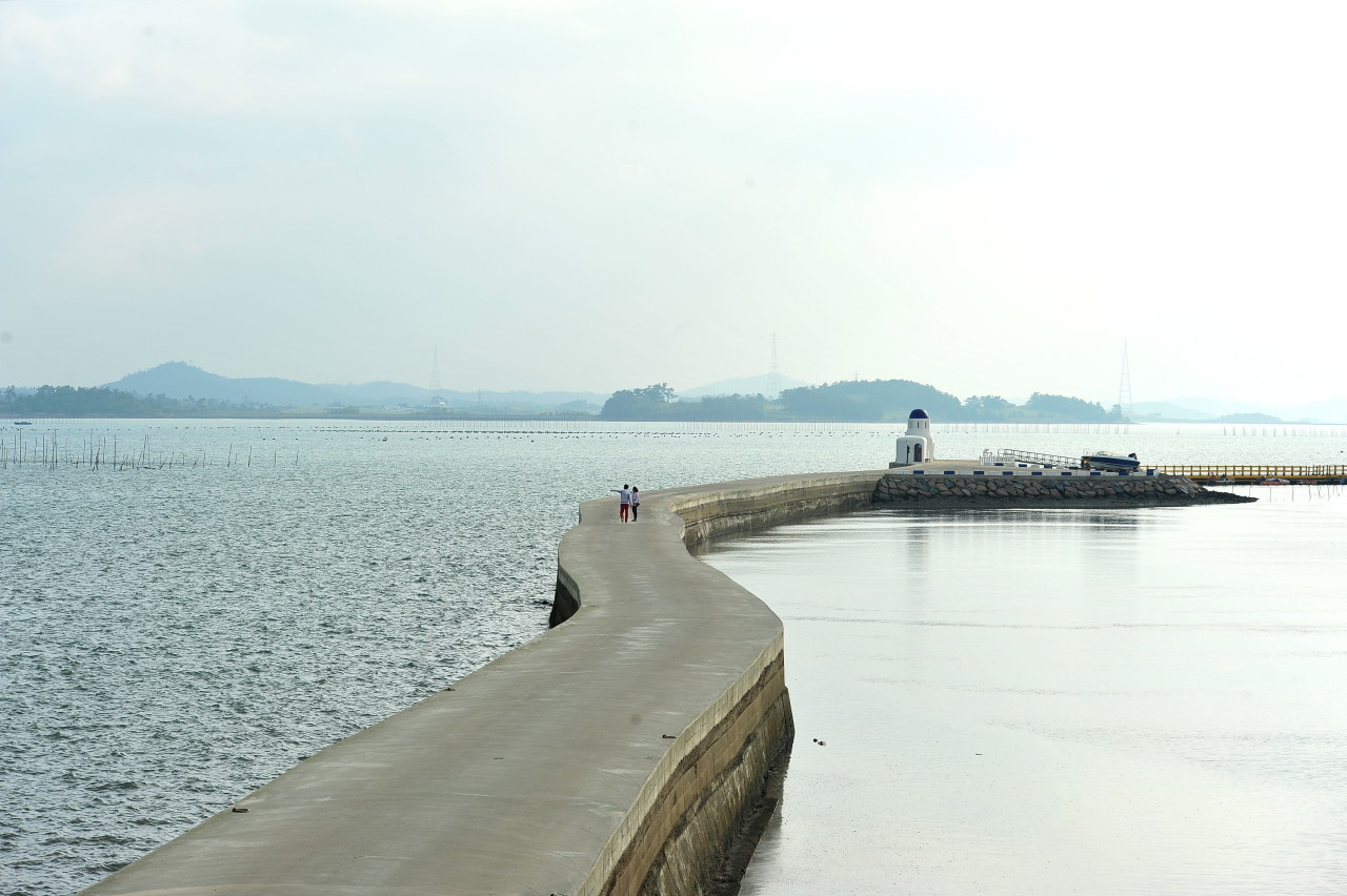 해송숲이 끝나는 지점에서는 증도의 명물인 짱뚱어다리를 만날 수 있습니다. 갯벌 위에 떠 있는 470m의 목교인 짱뚱어다리에서는 갯벌 생물을 관찰할 수 있으며, 다리의 교각을 뛰어가는 짱뚱어의 모습에서 이름이 유래되었습니다. 주변 관광지인 갯벌생태전시관에서는 다양한 갯벌생태계를 학습하고 관람할 수 있습니다. 또한, 북쪽 방축리 앞바다 도덕도 해역에서는 600여 년간 잠겨 있던 중국 송·원대의 유물이 발굴되어 세계의 이목을 집중시키기도 했습니다. 현재는 아시아 최초 슬로우시티로 지정되어 더욱 유명한 곳입니다.