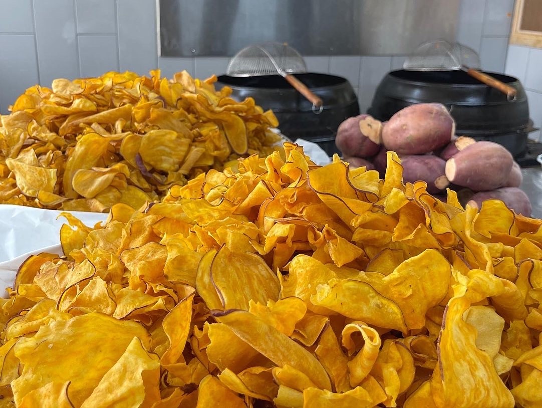 생활의 달인으로 인정받은 장인의 섬세한 손길은 이 간식의 특별함을 더욱 빛내줍니다. 얇게 채 썬 감자와 고구마는 순식간에 무쇠 가마솥으로 향해, 뜨거운 기름 속에서 바삭하고 고소한 감자칩과 달콤한 고구마칩으로 변신합니다. 마치 곡예를 보는 듯한 달인의 칼솜씨는 보는 이들의 감탄을 자아냅니다. 그렇게 탄생한 감자와 고구마칩은 한 번 맛보면 멈출 수 없는 매력적인 맛으로, 끊임없이 주문이 쇄도합니다.