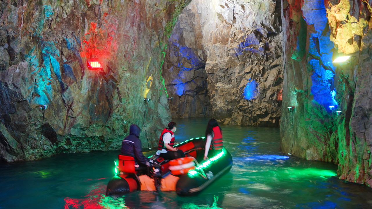 자수정 동굴나라는 두 가지 방법으로 동굴을 탐험할 수 있습니다. 첫 번째는 도보 탐험 코스로, 6,500만 년 전 입석 조립식 화강암으로 형성된 태고의 신비를 간직한 자수정 정동을 그대로 감상할 수 있는 자수정관, 자수정의 신비한 기운을 느낄 수 있는 기체험관, 소원 동굴 등 다양한 테마 공간으로 구성되어 있습니다. 두 번째는 동굴 내부 호수를 보트를 타고 이동하며 관람하는 코스입니다 (약 6분 소요).