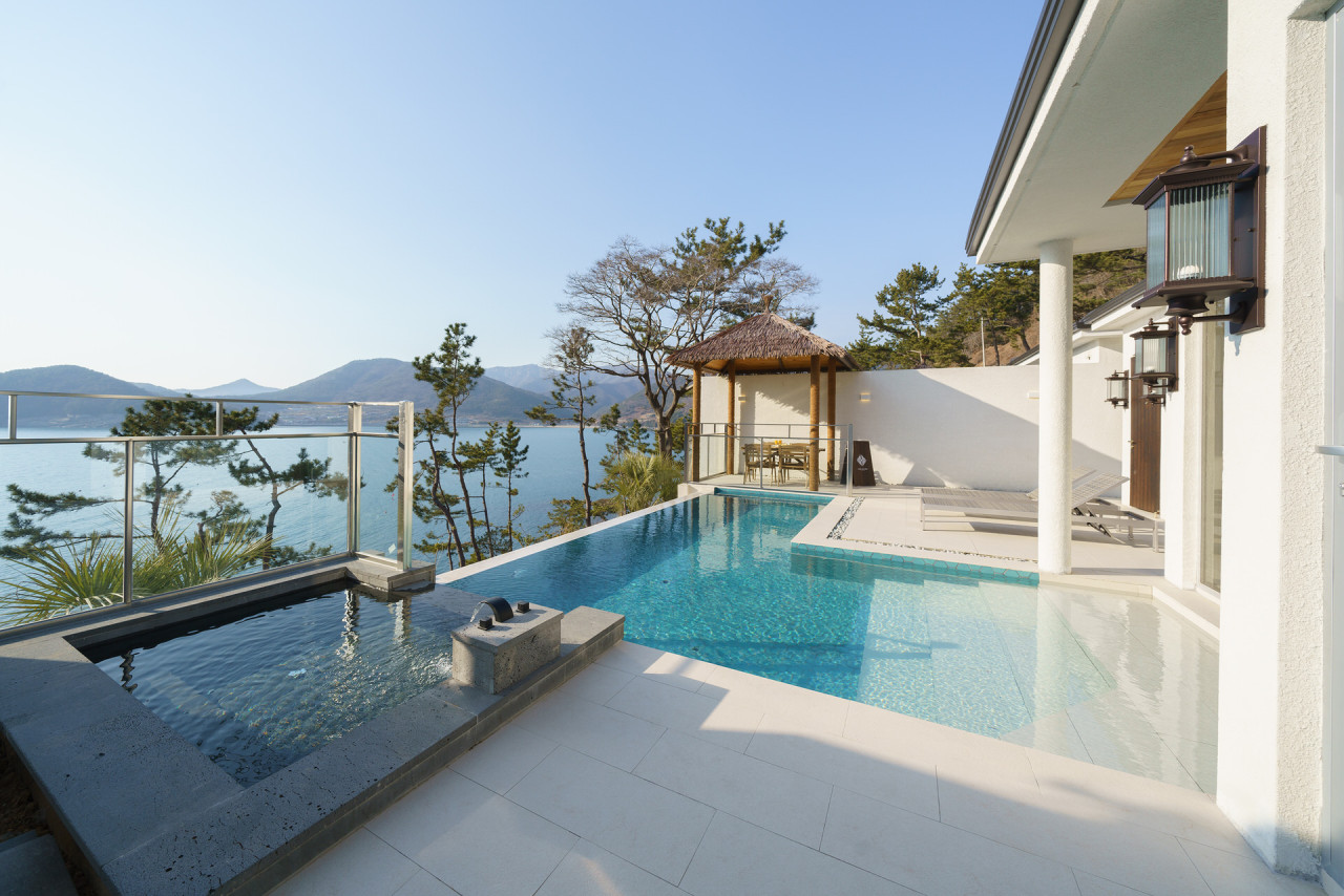 객실 안에서는 수채화 물감이 번진 듯 눈부신 햇살이 일렁이는 오션뷰가 펼쳐지고, 프라이빗한 개별 수영장에서는 따스한 햇살 아래 느긋한 시간을 보낼 수 있습니다. 시시각각 물드는 하늘을 감상할 수 있는 테라스는 최고의 낭만을 선사하며, 반복되는 일상에서 벗어나 해방감을 느낄 수 있는 라운지 공간은 편안한 휴식을 제공합니다. 또한, 머무는 동안에도 건강 관리를 소홀히 하지 않도록 특별함이 깃든 피트니스 클럽을 운영하고 있으며, 야외 자쿠지 (Deluxe A 타입은 실내 욕조)에서는 따뜻한 물에 몸을 담그며 피로를 풀 수 있습니다.