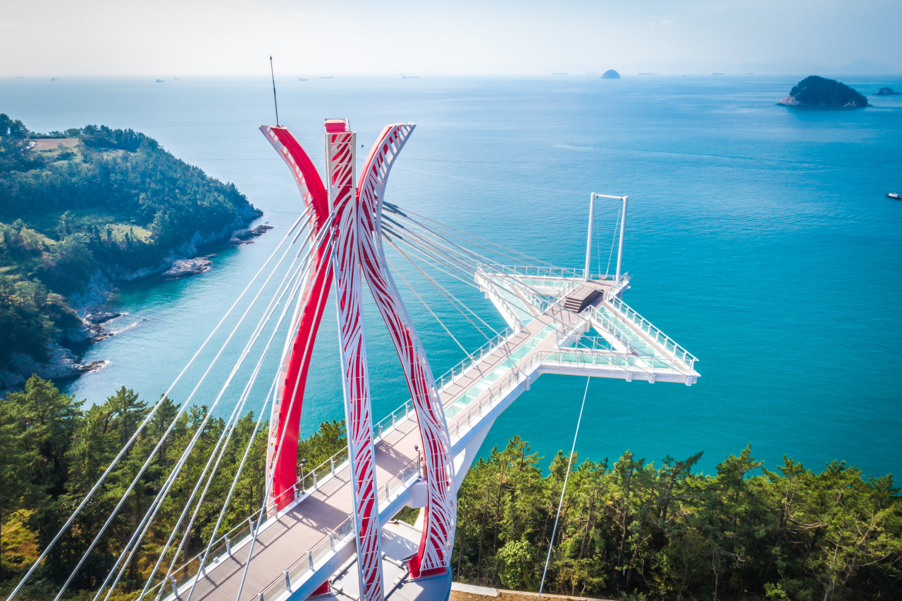 설리 스카이워크는 국내 최초로 건설된 비대칭형 캔틸레버 교량이라는 특별함을 지니고 있습니다. 원통형 구조로 설계되어 어느 곳에서든 360도 파노라마처럼 펼쳐지는 남해 바다의 절경을 감상할 수 있다는 것이 큰 매력입니다. 약 36m 높이에 폭 4.5m, 총 길이 79m에 달하는 이 구조물은, 특히 바다를 향해 뻗어 나간 43m 길이의 캔틸레버가 국내 최장 길이를 자랑하며 방문객들에게 짜릿한 스릴과 잊지 못할 경험을 선사합니다.