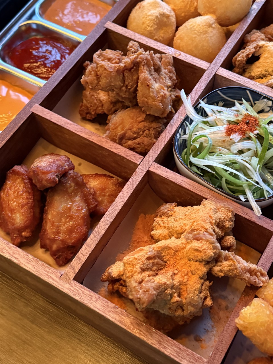 팔달맥주의 시그니쳐 메뉴인 '임금님 9첩 치킨'은 3가지 시즈닝과 4가지 어울림 소스, 그리고 5가지 곁들임 음식이 환상적인 조화를 이루는 특별한 메뉴입니다. 9가지 다채로운 구성으로 즐길 수 있는 치킨은 팔달맥주에서만 경험할 수 있는 특별함입니다. 또한, 강원 토마토 생맥주, 경상 샤인머스캣 생맥주 등 지역별 특색을 담은 다양한 생맥주를 맛볼 수 있어 고르는 재미까지 더합니다.