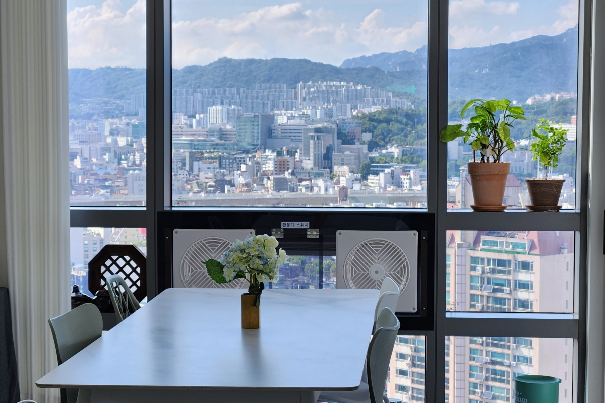 16층에 위치한 덕분에 인왕산, 북한산, 도봉산으로 이어지는 탁 트인 파노라마 뷰를 감상하며 요리할 수 있다는 점도 매력적입니다. 입주 1년 차의 새 건물이라 최신 편의시설을 갖추고 있으며, 같은 건물 내에 편의점이 입점해 있어 편리합니다. 또한, 롯데마트, 롯데백화점, 경동시장 등 다양한 식재료를 구할 수 있는 곳들이 인접해 있어 장보기에도 최적의 환경을 제공합니다. 다양한 식기와 조리 도구가 완비되어 있어 요리에만 집중할 수 있습니다.