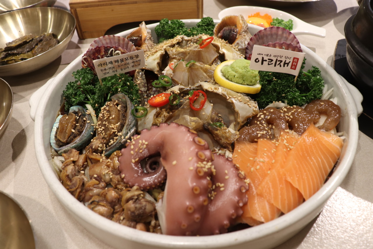 한방보쌈정식은 돼지고기와 궁합이 좋은 약재를 넣어 삶은 삼겹살과 직접 담근 배추 겉절이의 환상적인 조화를 경험할 수 있으며, 보리굴비정식은 영광에서 전통 방식으로 건조한 쫀득한 보리굴비를 구수한 녹차와 함께 즐기는 특별한 메뉴입니다. 매콤한 쭈꾸미볶음정식은 입맛을 돋우는 화끈한 맛으로 잊을 수 없는 식사 경험을 선사하며, 해물모듬장 신선한 해산물을 아리재 특제 소스에 담아 다채로운 풍미를 즐길 수 있습니다.