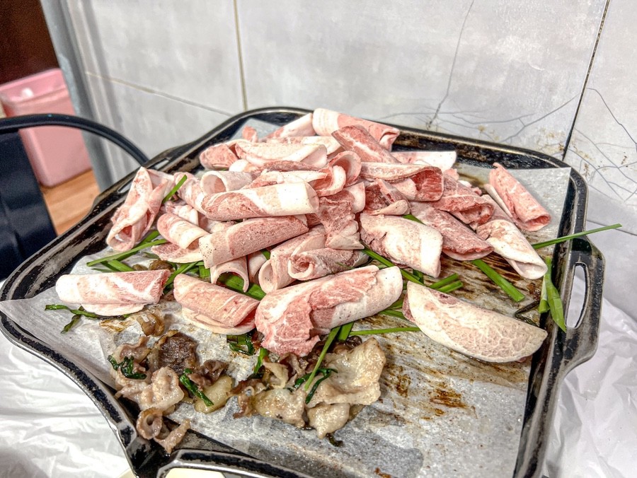 전남 고흥군 과역면에 위치한 과역기사님식당은 푸짐한 삼겹살 백반으로 유명한 가성비 맛집입니다. 잘 지은 밥과 무려 열세 가지의 밑반찬, 그리고 삼겹살로 구성된 단일 메뉴를 착한 가격에 제공합니다. 육안으로도 신선함이 느껴지는 삼겹살은 부추와 당근이 푸짐하게 올라가 있어 잡내를 잡아주고 풍미를 더합니다.