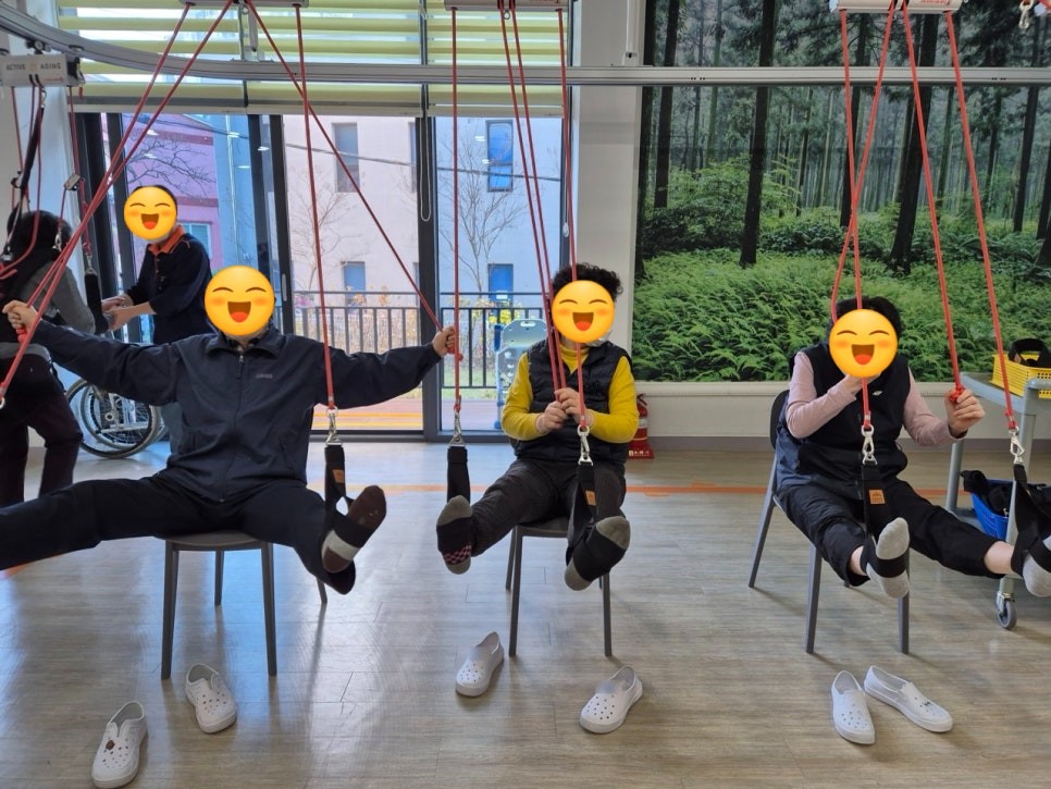 사랑재활주간보호센터는 활기찬 분위기 속에서 사회복지사, 요양보호사, 전문 간호인력 등 전문 인력이 어르신들을 케어하며, 물리치료사가 상주하여 어르신 맞춤형 물리치료 및 통합 재활 서비스를 제공하는 차별성을 가지고 있습니다. 또한, 스마트 식판 스캐너, 디지털 치매 인지 시스템 등 최신 디지털 서비스를 통해 어르신들의 건강 관리를 돕고 있으며, 보호자분들은 매일 카카오톡으로 부모님의 식단 정보와 영양소 섭취 내역을 확인할 수 있습니다.