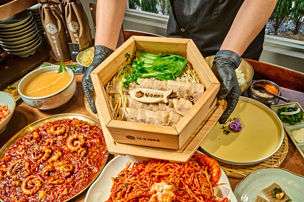 청산1954에서는 황제가 즐겨 먹었다는 식재료를 넣어 오독한 식감이 매력적인 오독낙지볶음, 12가지 한약재로 삶아 편백나무 향을 입힌 편백낙지보쌈, 통낙지와 7가지 해산물에 방아를 넣어 깊은 향을 더한 통낙지해물찜 등 다채로운 낙지 요리를 맛볼 수 있습니다.