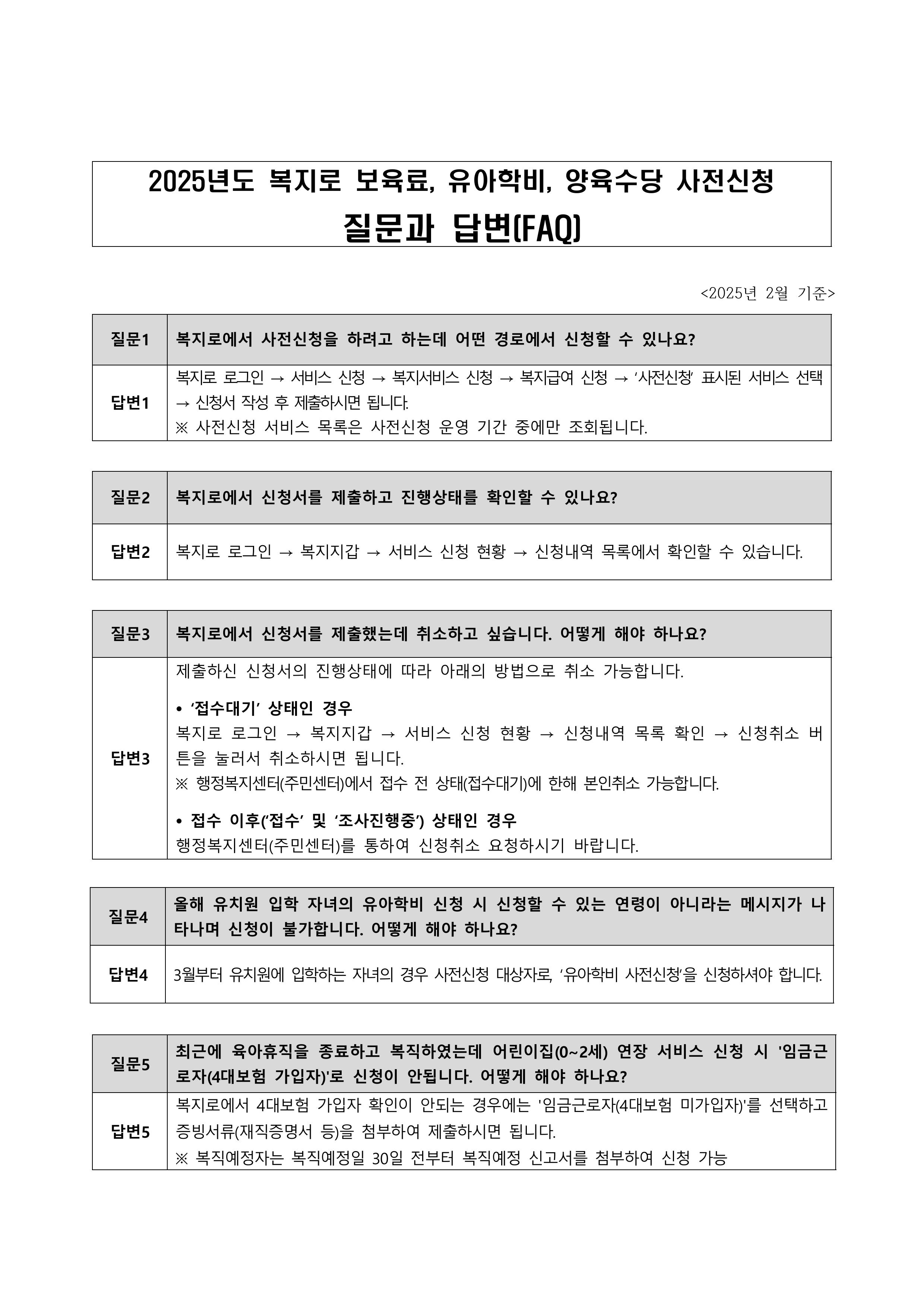 2025년 영유아 보육서비스는 부모들에게 필요한 다양한 보육 지원을 제공하는 프로그램으로, 보육료, 유아학비, 양육수당 등을 포함합니다. 이 서비스는 2025년 3월 새 학기를 맞이하여 사전 신청이 가능하며, 영유아 보육 서비스를 새로 이용하거나 보육 자격 변경이 필요한 아동을 대상으로 합니다.