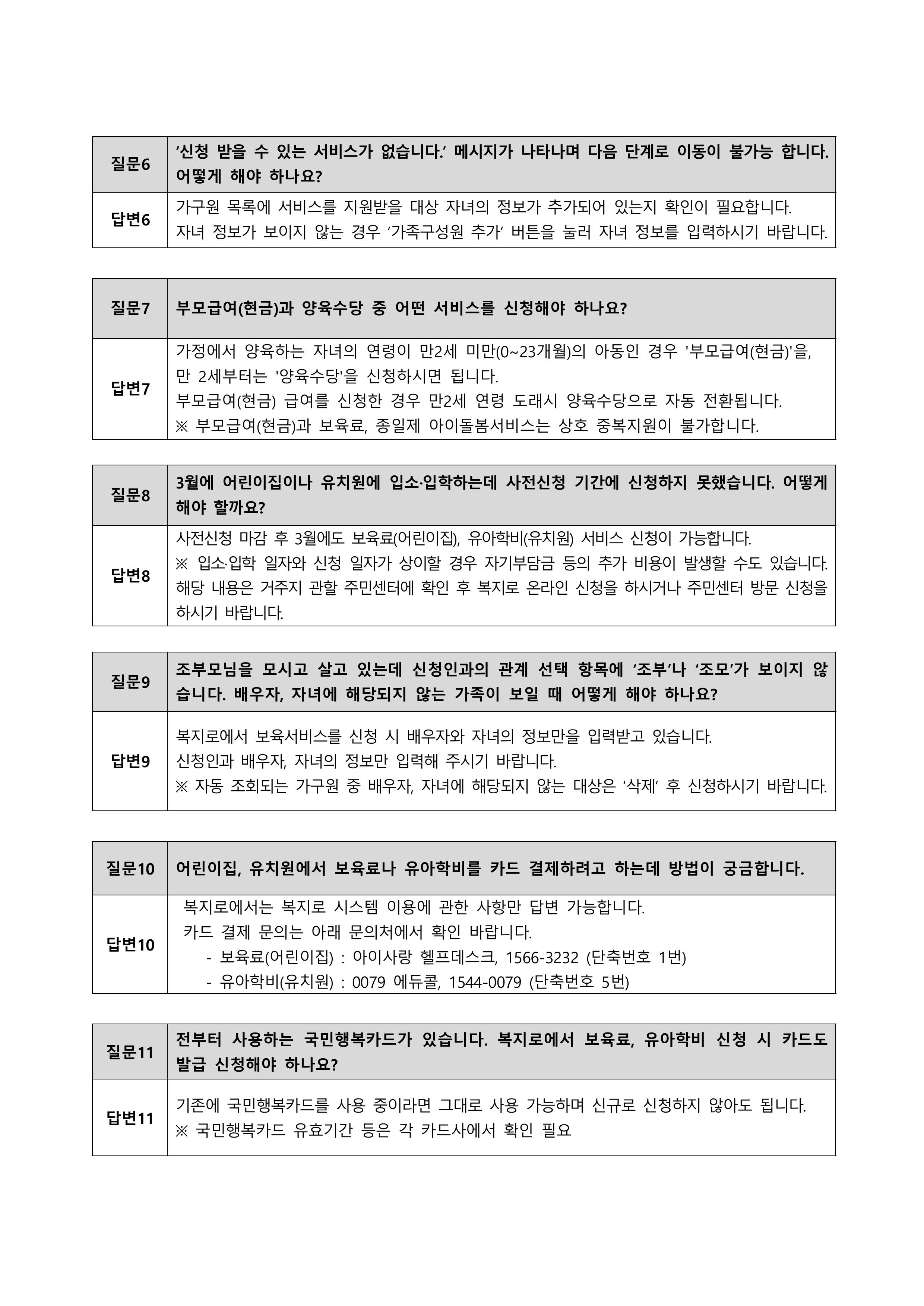 - 보육료: 어린이집에 입소하는 아동을 위한 지원금.