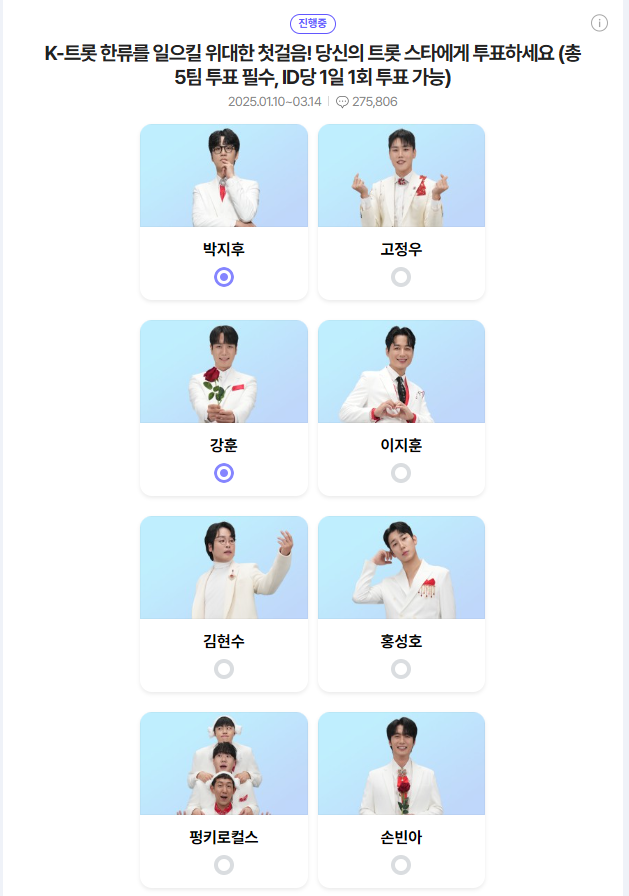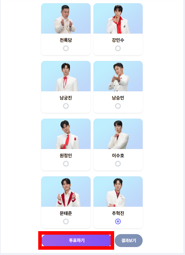 3. 응원하는 가수 선택하고 투표하기 클릭
