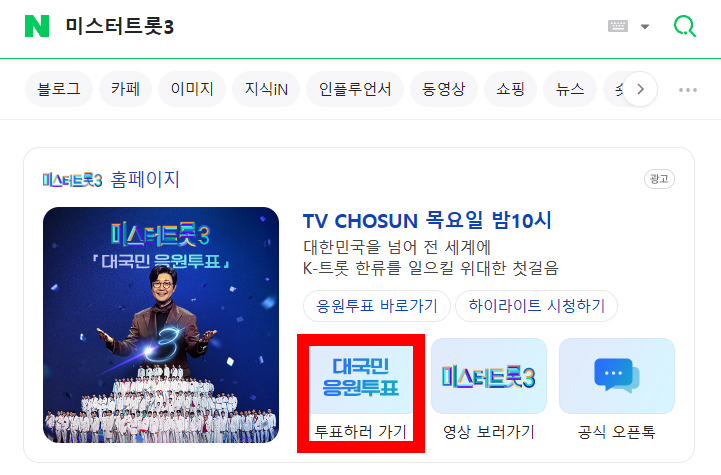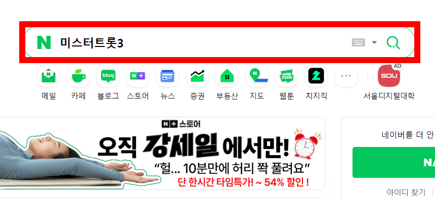 1. 네이버 검색창에 미스터트롯3 검색