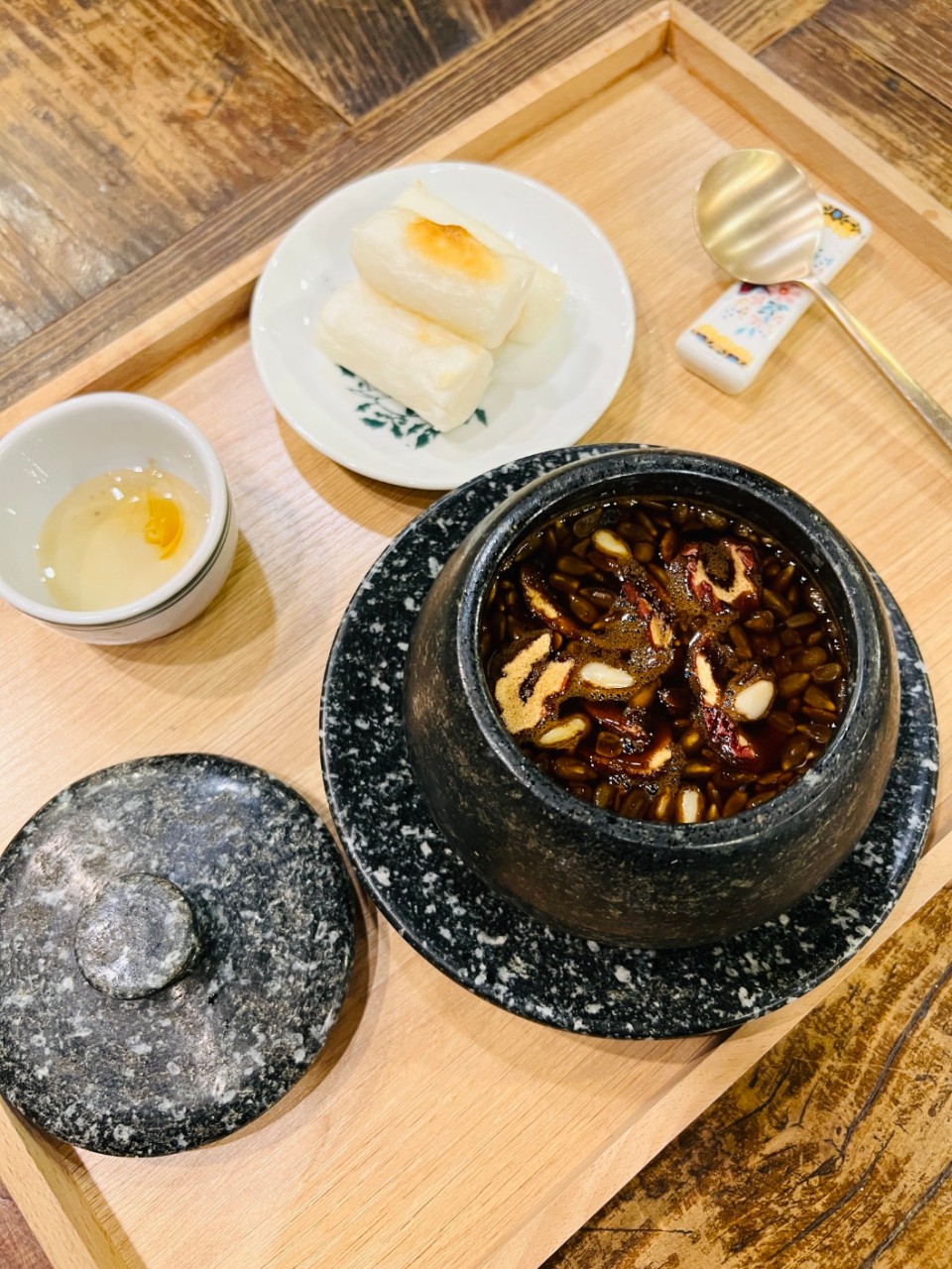 별채 앞마당에는 오래된 항아리와 작은 조경폭포가 어우러져 옛 감성을 더욱 깊이 느낄 수 있는 공간이 조성되어 있습니다. 이르리에서는 커피와 다양한 디저트가 준비되어 있으며, 특히 빙수는 옛 감성을 살린 옥그릇과 유기 그릇에 플레이팅되어 더욱 특별한 분위기를 선사합니다.