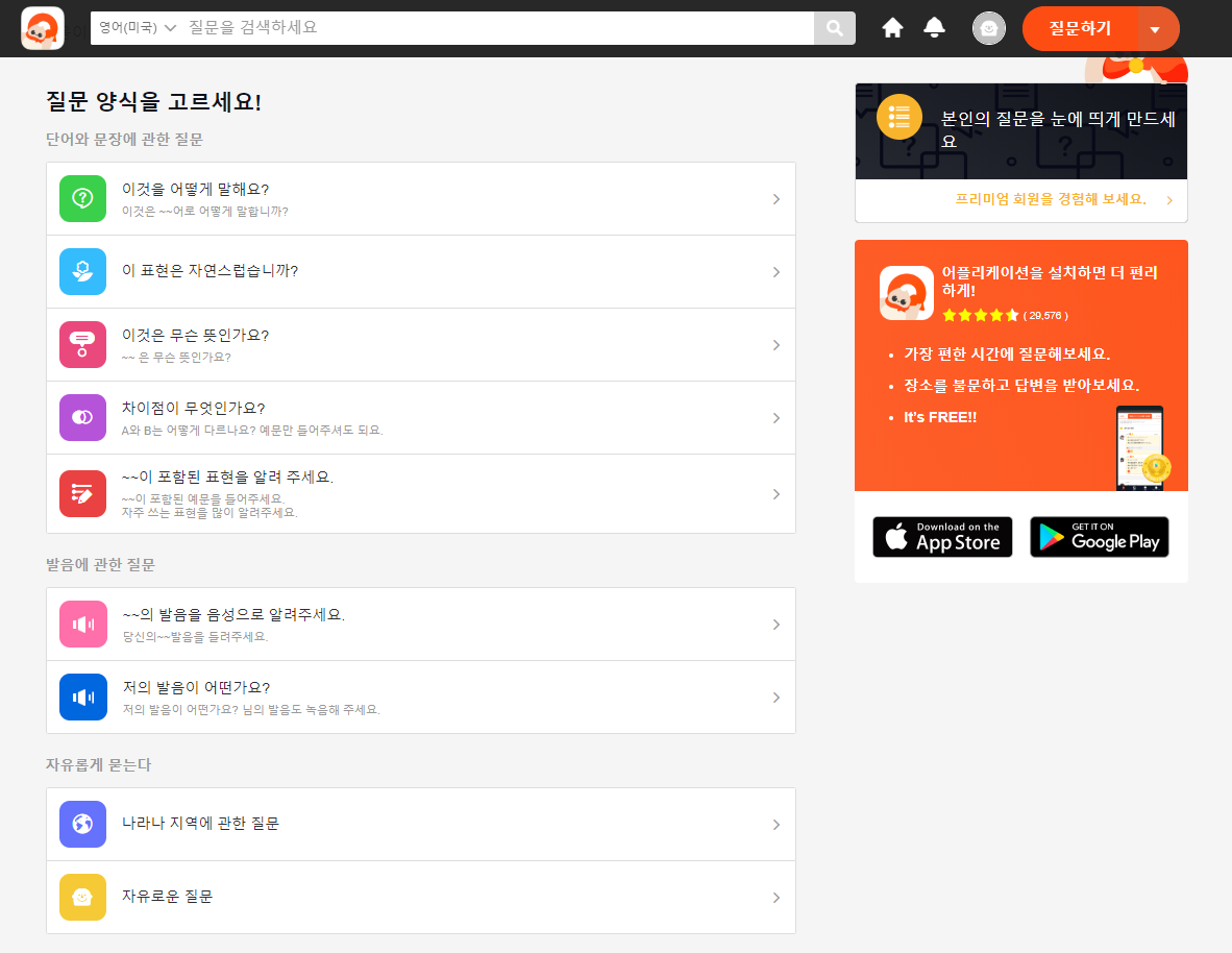 모르는 외국어 표현들을 묻고 답할 수 있는 사이트이다.