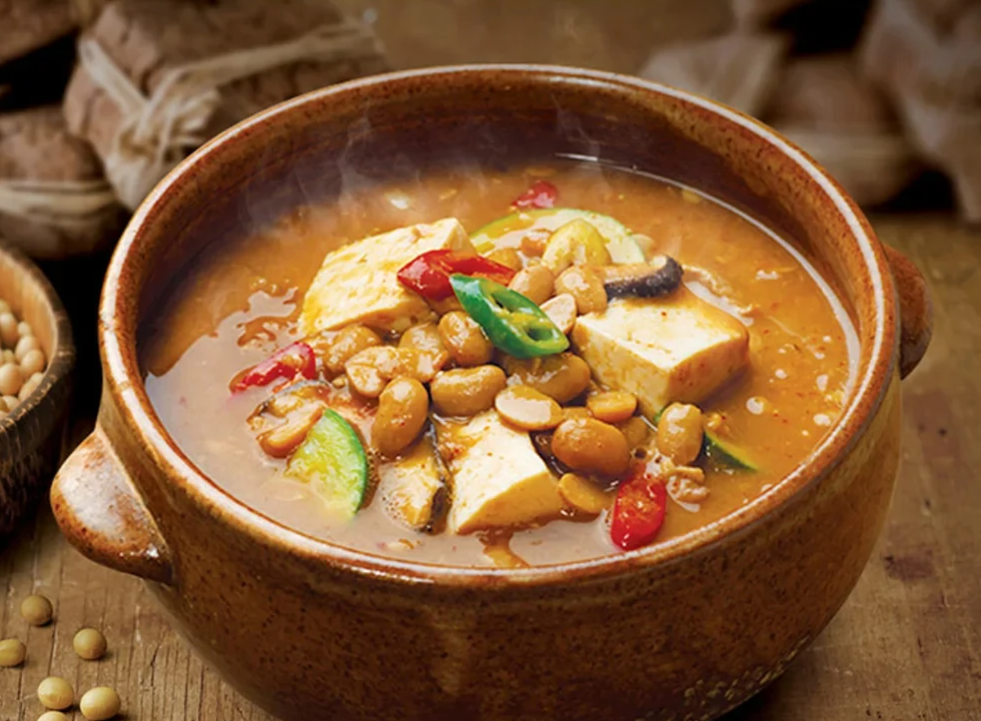 2. 육수가 끓기 시작하면 다시마를 건져낸 뒤, 청국장을 넣고,