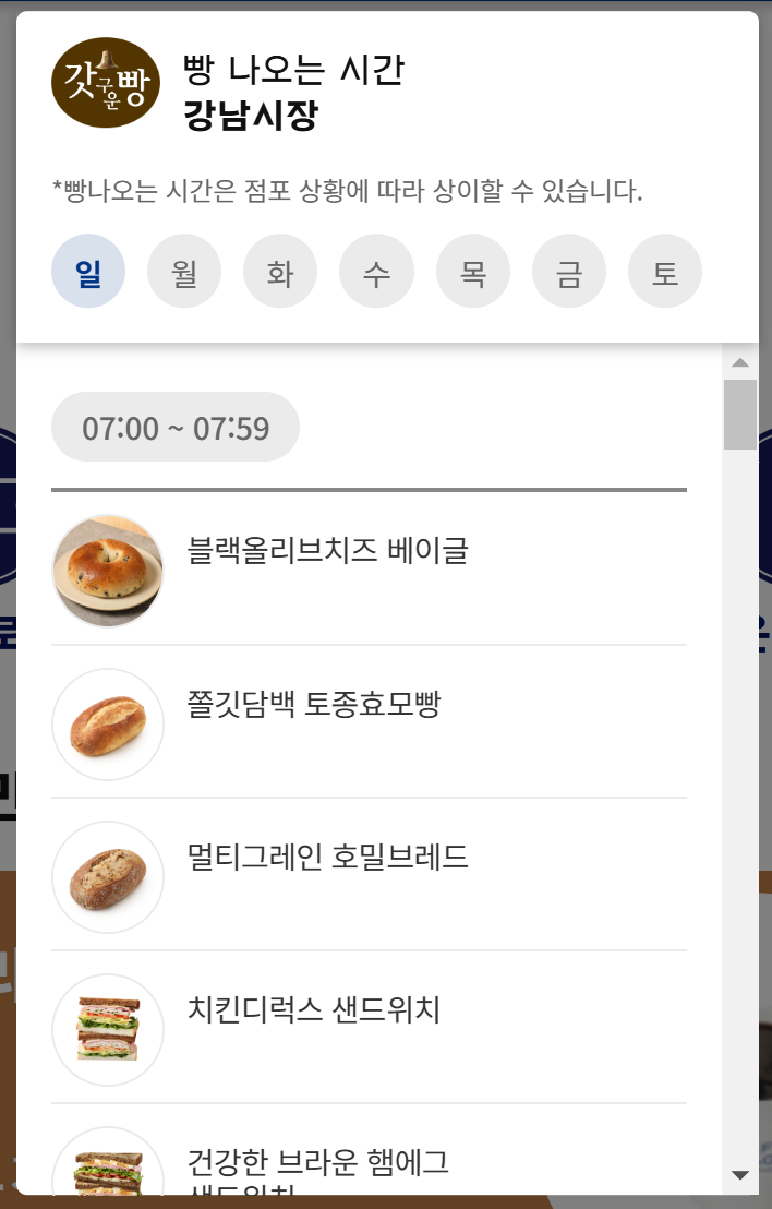 각 매장마다 빵이 나오는 시간이 다를 수 있습니다.
