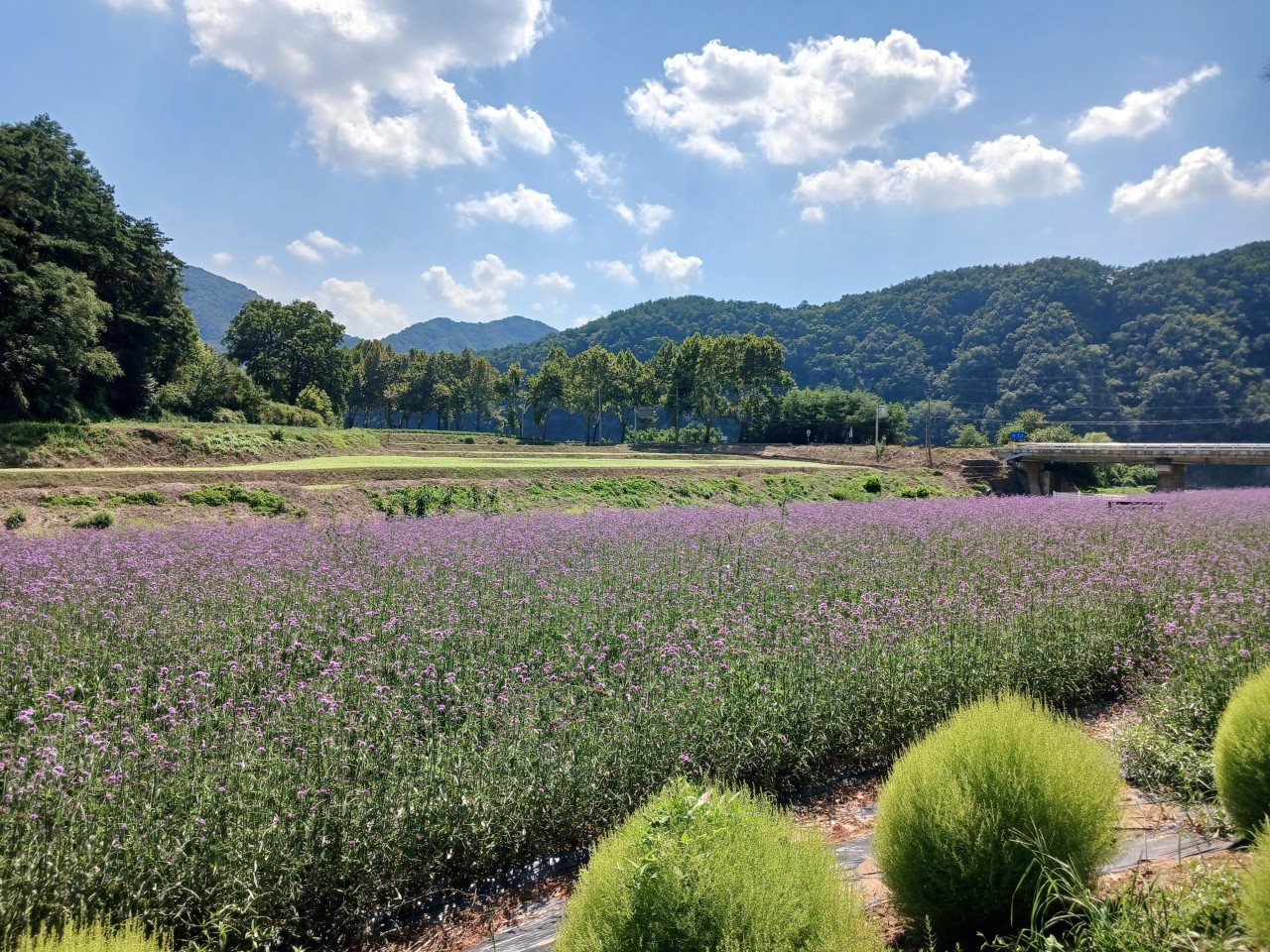 꽃밭 중앙에는 초록색 나무 의자 포토존이 마련되어 있어 인생샷 명소로도 인기입니다. 입장료 없이 자유롭게 관람할 수 있으며, 넉넉한 주차 공간도 갖추고 있어 접근성도 좋습니다. 매년 여름에는 버베나 사진 공모전도 열려 여행의 즐거움을 더해줍니다.