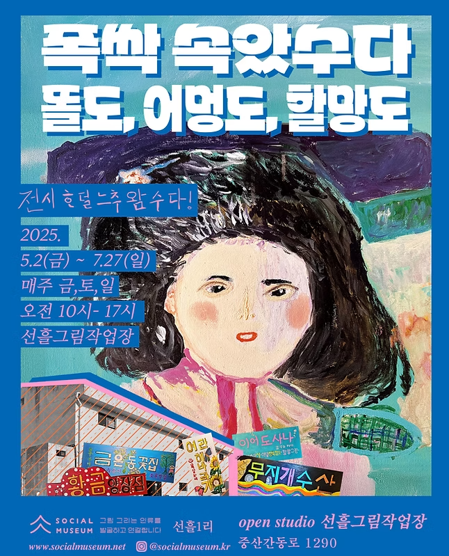 제주 여성의 삶과 감성을 담은 따뜻한 그림 전시입니다. 매주 금·토·일 오전 10시~오후 5시까지 관람 가능하며, 제주시 조천읍 선흘그림작업장에서 진행됩니다. 관람객에게 공감과 감동을 선사하는 예술 공간입니다. 소셜뮤지엄 홈페이지에서 정보 확인 가능해요.